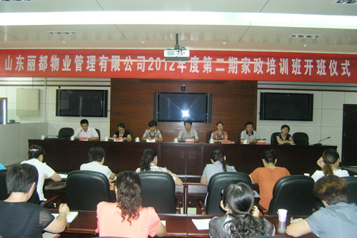 2012年7月25日“山東麗都物業(yè)管理有限公司2012年度第二期家政培訓班開班儀式”開班典禮在濱州市財政局會議室隆重舉行。
